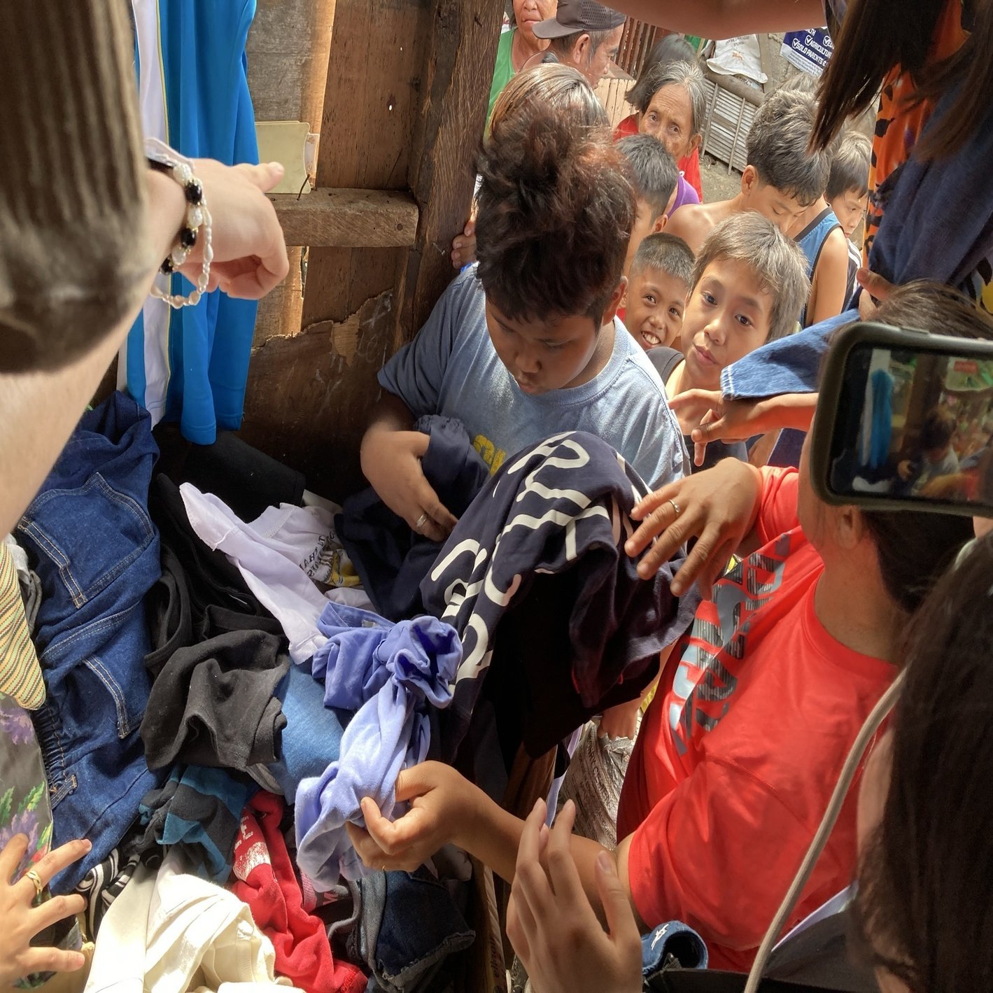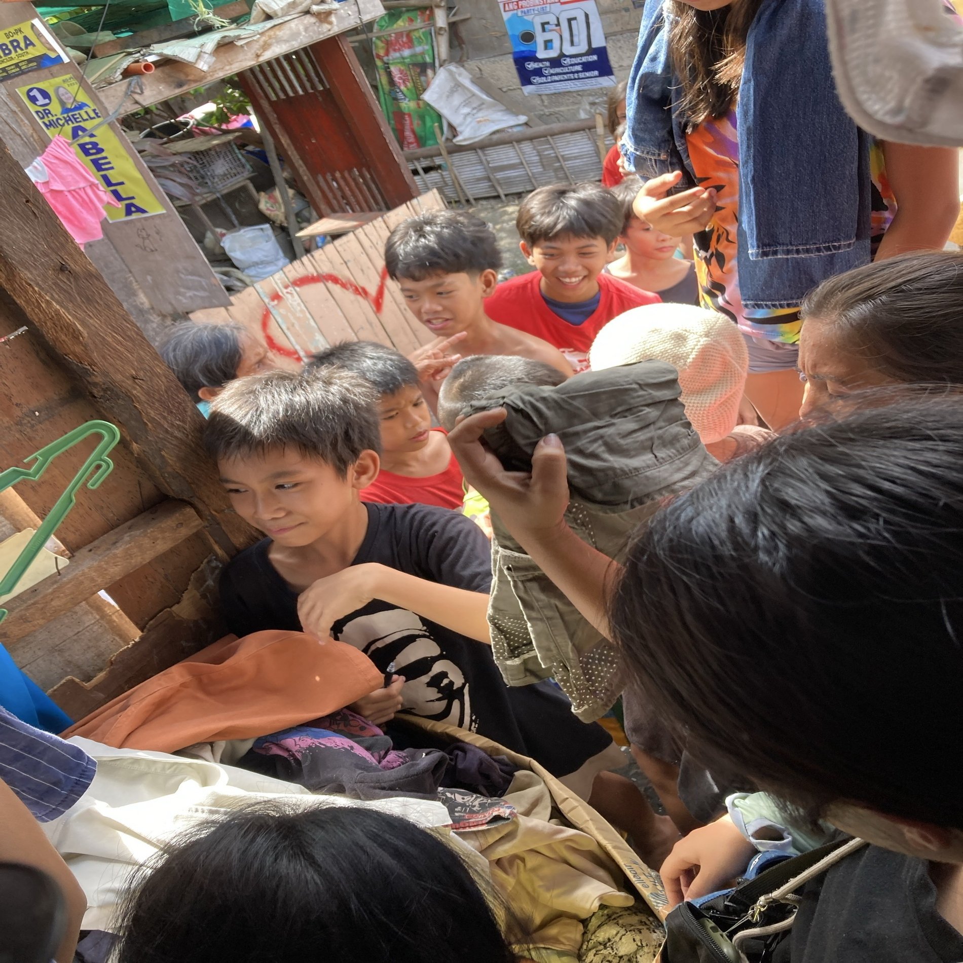 今日は午後から寄付して頂いた支援物資の服を、近所のスラムで配ります。